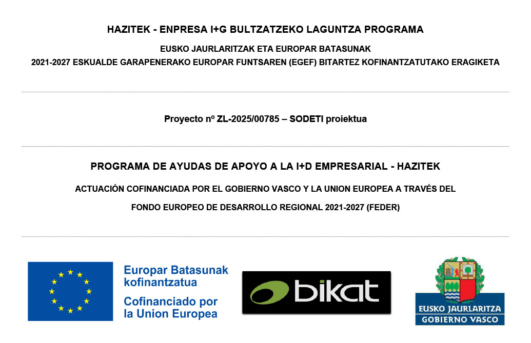 Bikat toma parte junto a otras empresas vascas en el proyecto SODETI, englobado en el PROGRAMA DE AYUDAS DE APOYO A LA I+D EMPRESARIAL – HAZITEK cofinanciado por la Unión Europea y el Gobierno Vasco.